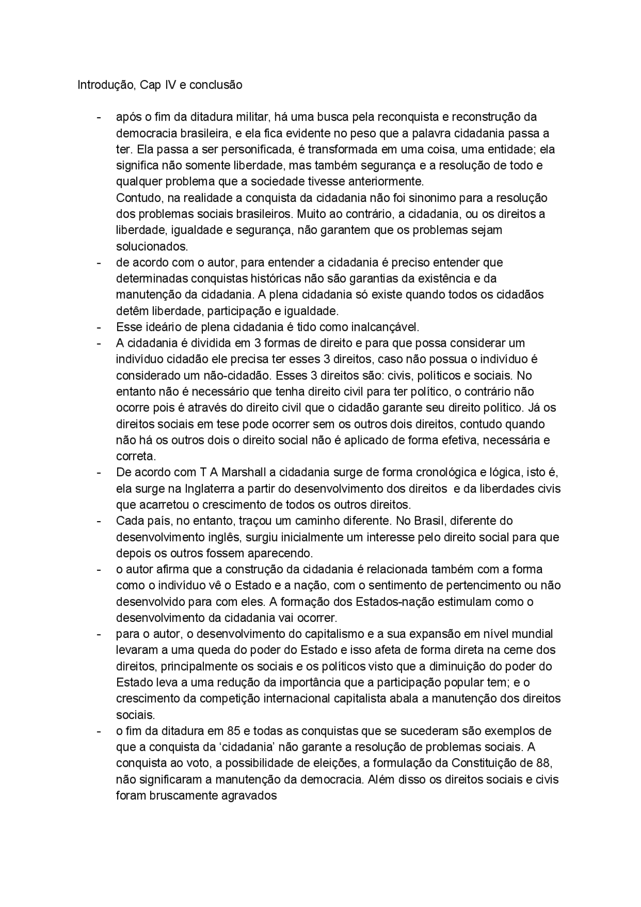 Resumo de Uma História do Exercício da Cidadania no Brasil...