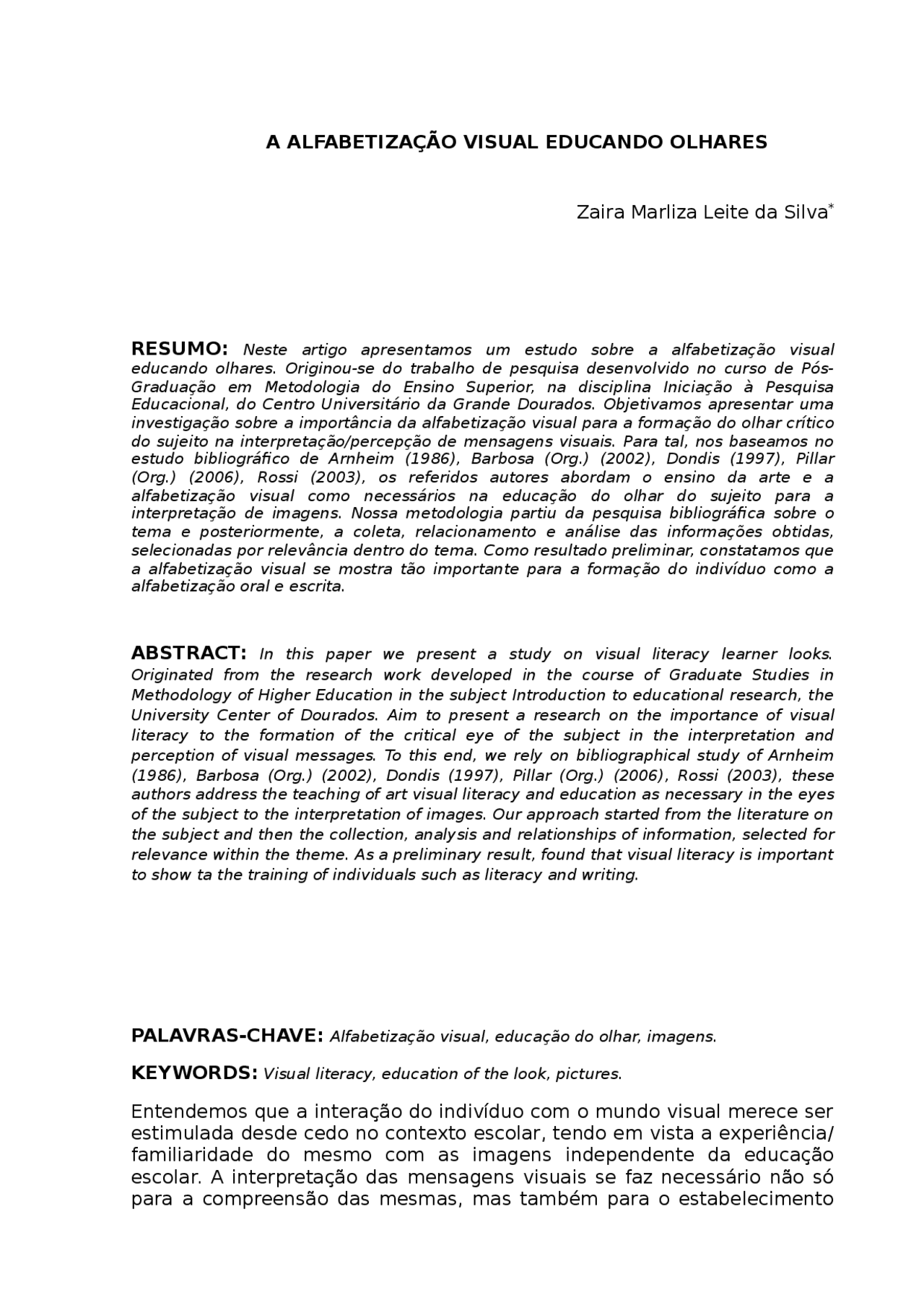 Segundo Barbosa 2008 A Necessidade De Alfabetização Visual