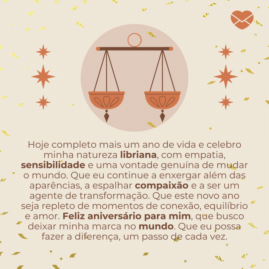 Em 20 de outubro, celebramos os nascidos sob o signo de Libra que trazem sua sensibilidade, diplomacia e busca por equilíbrio para o mundo. Se você é Libra, aproveite este dia especial para refletir sobre seus valores e como você os aplica em sua vida.