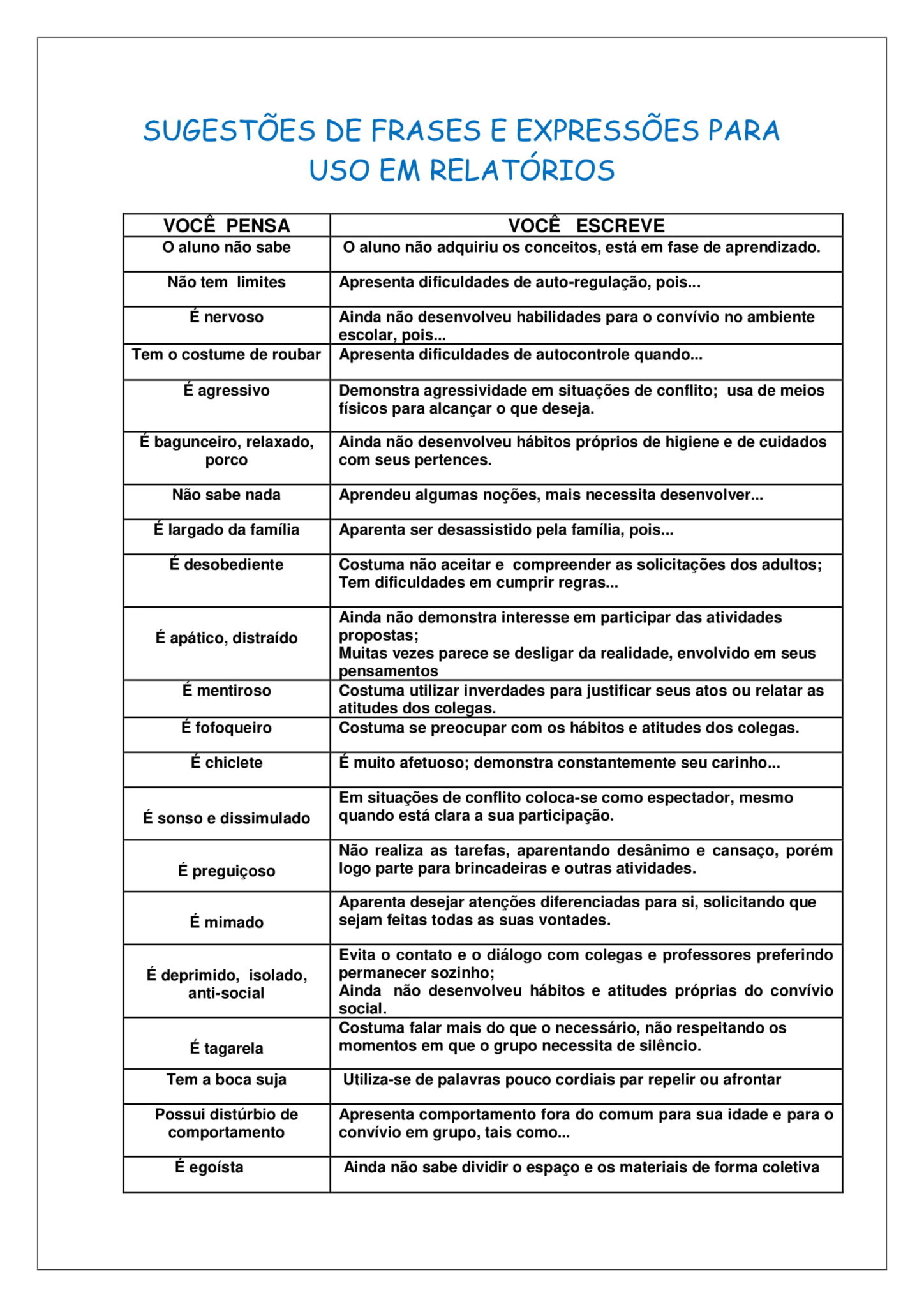 SugestÕes de palavras e expressÕes para uso em relatÓrios – Artofit