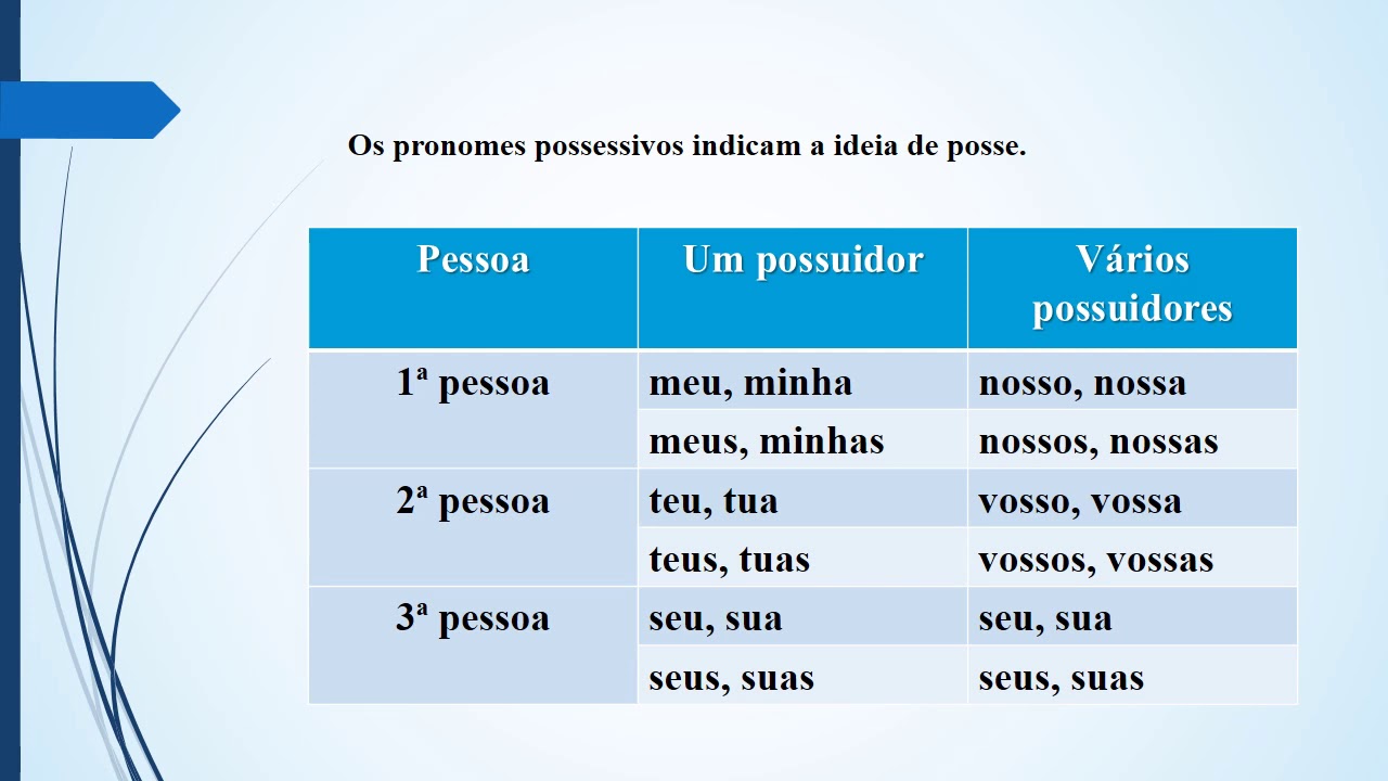 A tabela de pronomes possessivos é uma ferramenta essencial para compreender e utilizar corretamente a língua portuguesa. Pronomes possessivos são palavras que substituem substantivos e indicam posse ou pertencimento, expressando quem é o dono de algo.