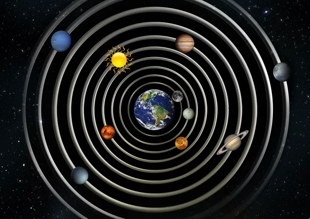 A teoria geocêntrica, ou modelo geocêntrico, foi amplamente aceita entre os gregos antigos e durante a Idade Média. Esta teoria colocava a Terra no centro do universo, com o Sol, a Lua, os planetas e as estrelas girando em torno dela. Essa visão intuitiva, baseada na observação direta do movimento aparente do Sol e das estrelas, foi defendida por pensadores como Aristóteles e Ptolomeu, que desenvolveram complexas estruturas matemáticas para explicar as movimentações celestes.