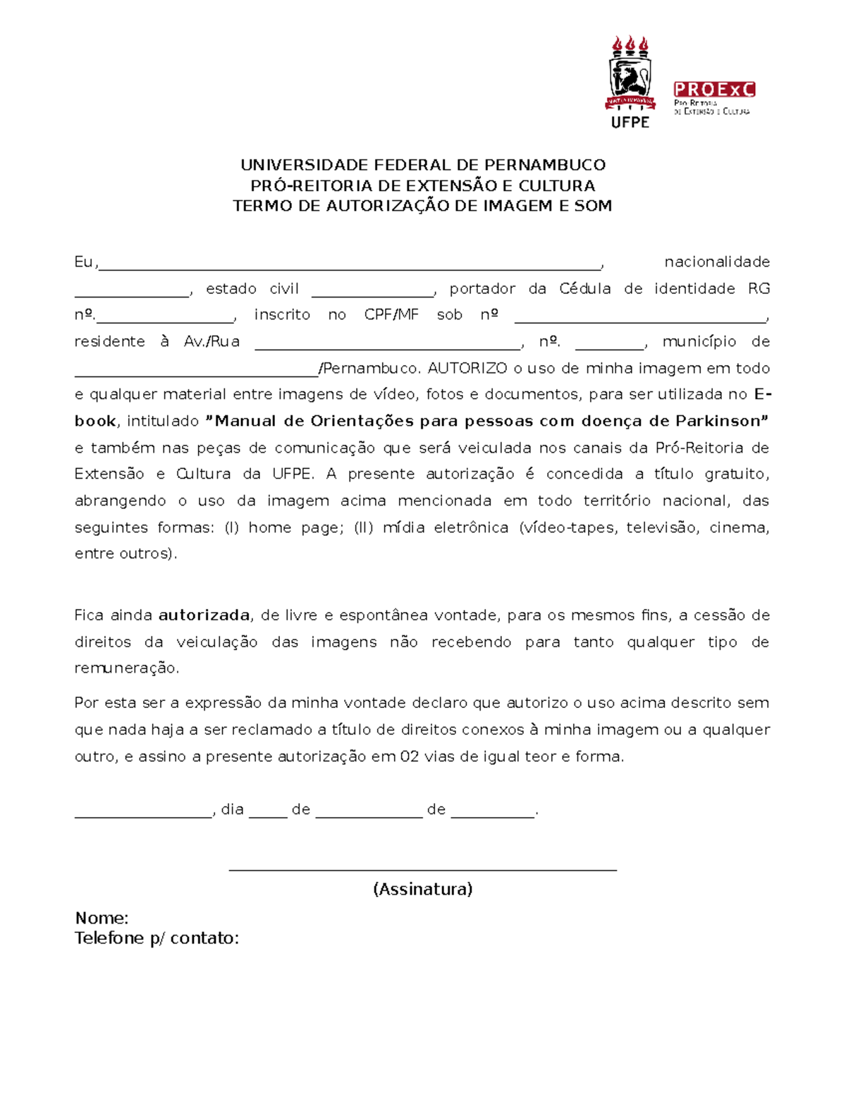 Termo De Autorização De Uso De Imagem E Voz