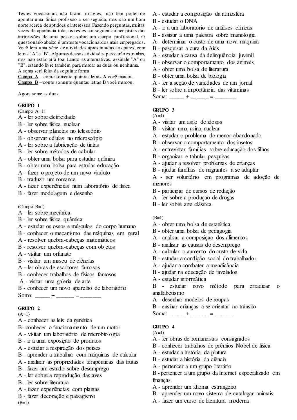 Teste Vocacional Para Imprimir