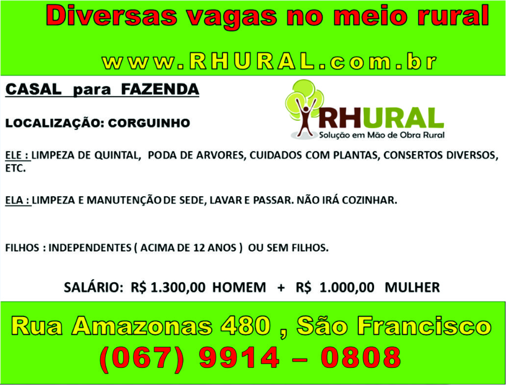 Jornal Meu Emprego - MS - Vaga - Rhural - Diversas vagas no meio rural